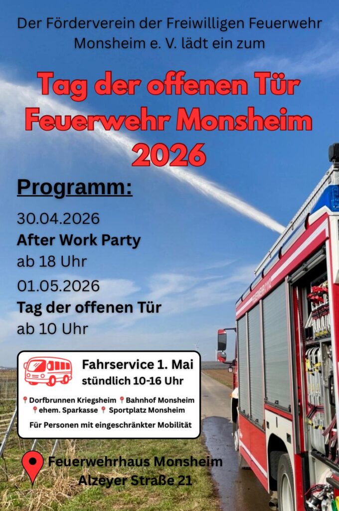 Auf unseren Seiten finden Sie umfangreiche Informationen über die Feuerwehreinheit Monsheim, die Jugendfeuerwehr und den Förderverein der Freiwilligen Feuerwehr Monsheim e.V.